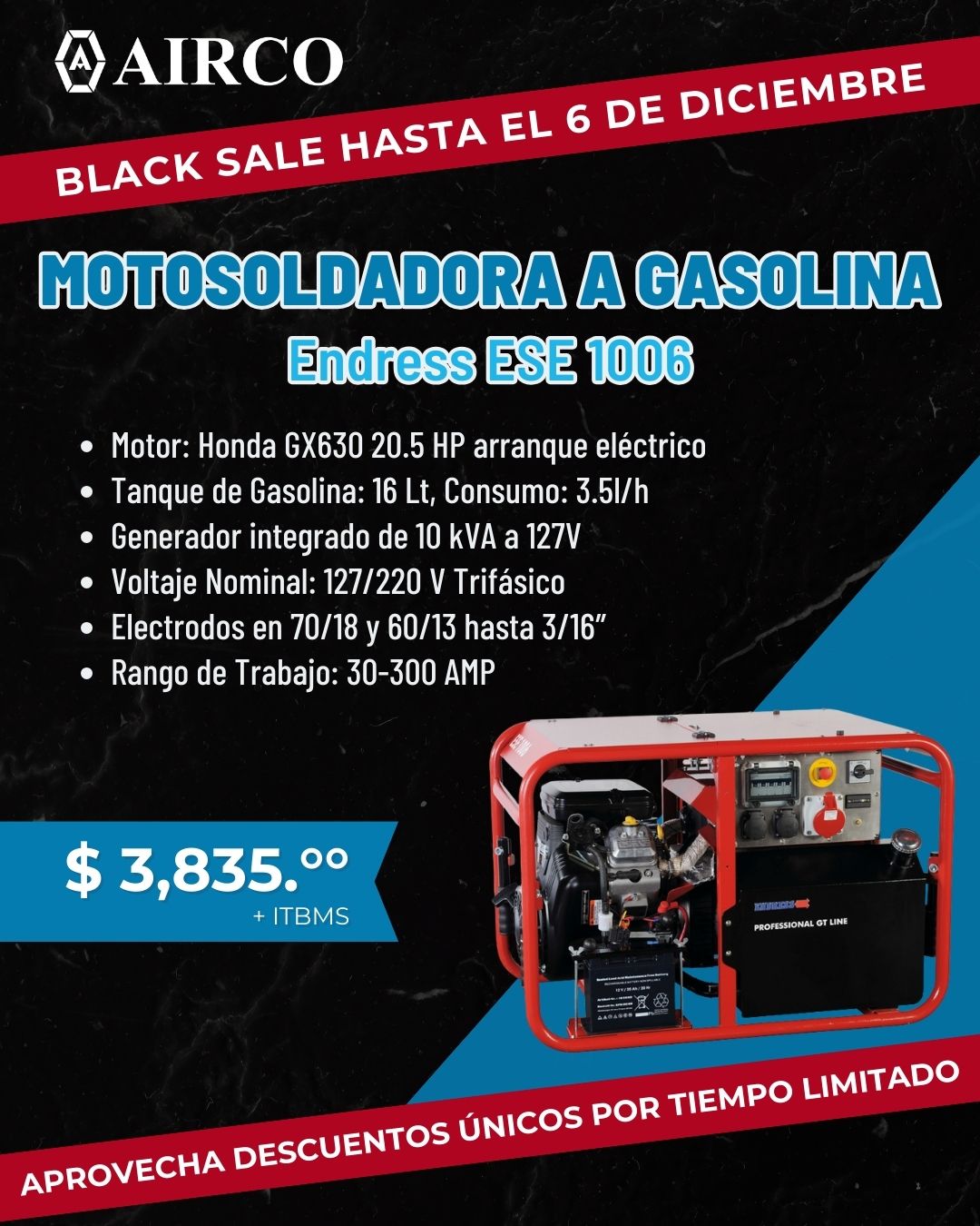 Motosoldadora a Gasolina – ESE 1006, abierta de 300 amp, Motor Honda de 21 hp, Electrodos de 7018 y 6013 hasta 3/16″ Gen 8 KVA 110/220V 3F
